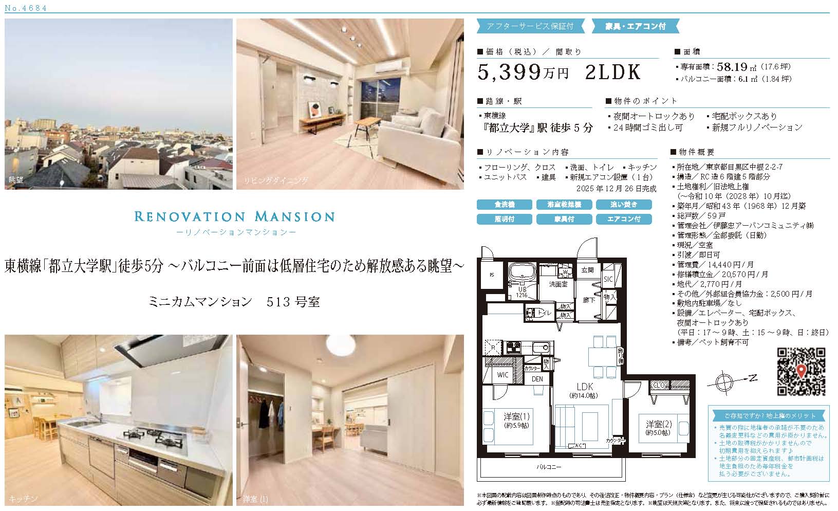 価格 5399万円 所在 目黒区中根2